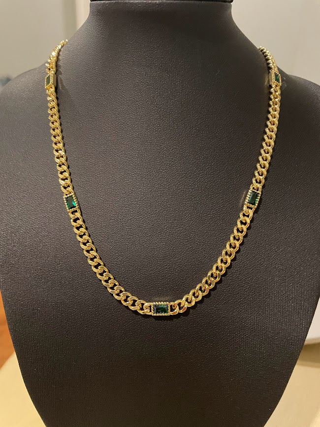 16" curb chain with green gemstones
