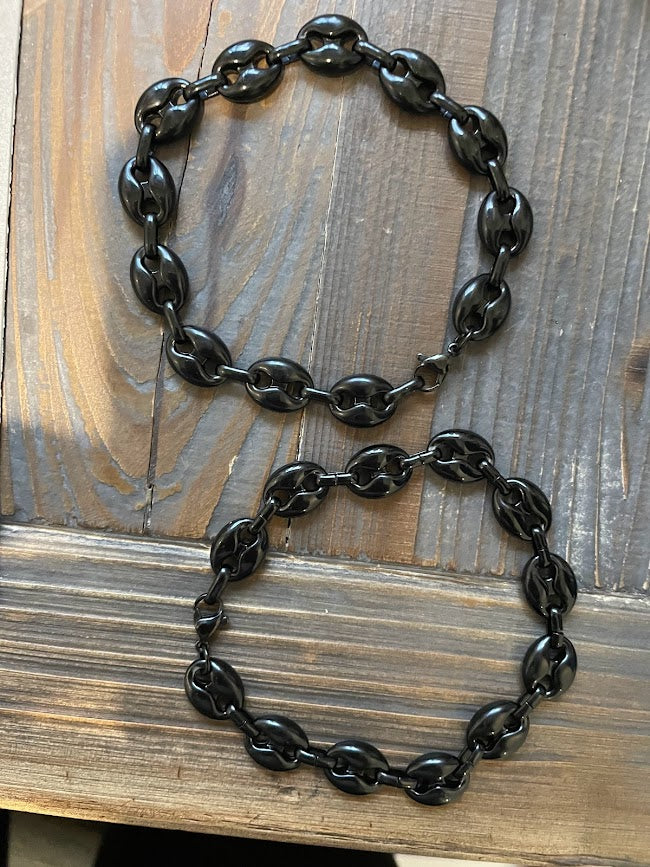8" Black enamel over brass puffed anchor marinor bracelets