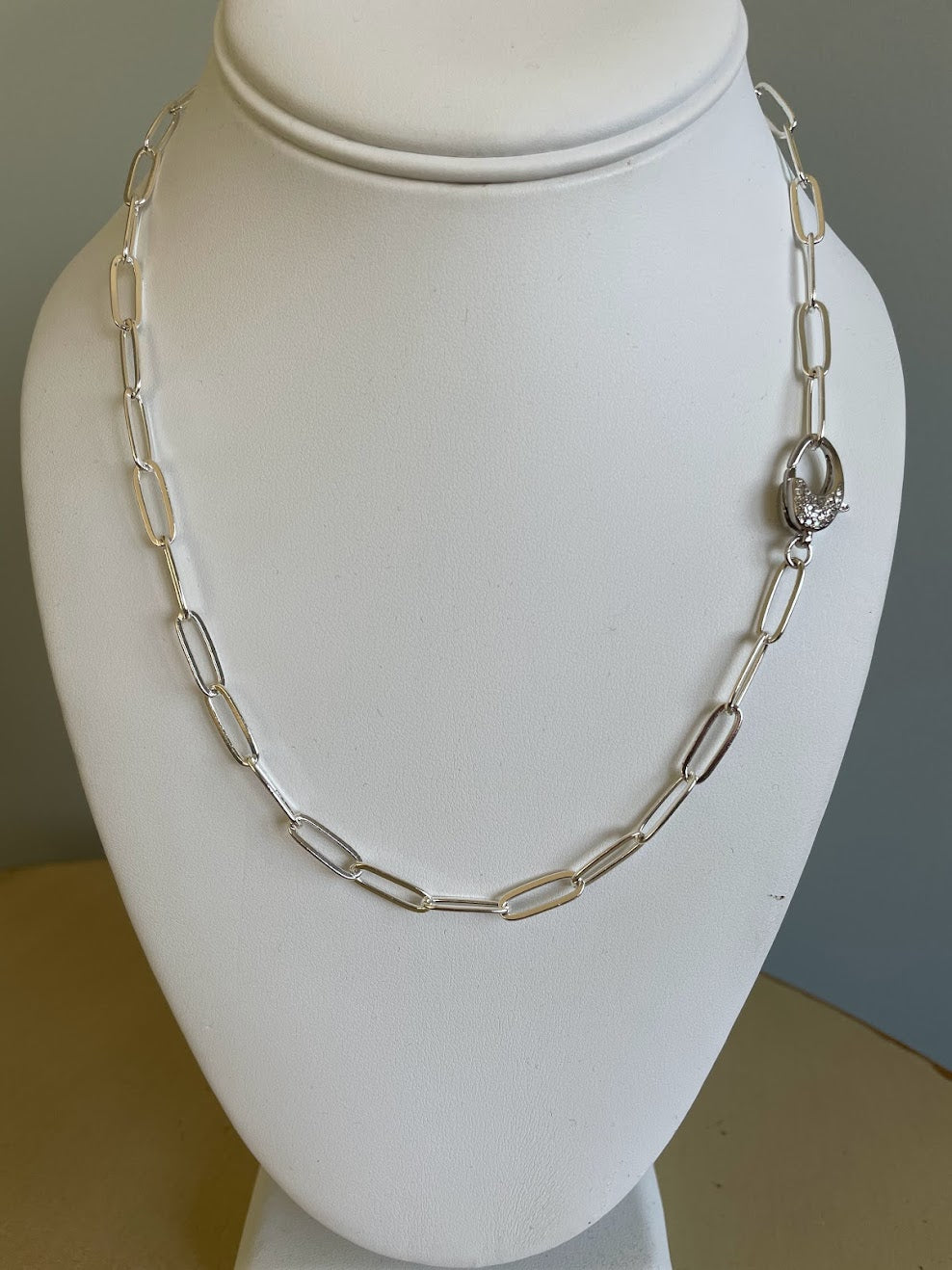 18" silver thin paper clip chain with silver cz lobster clasp