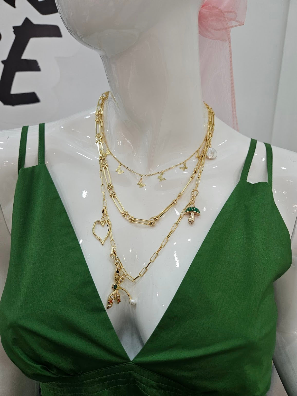 Triple layer 18k gold plated chains with removable charms